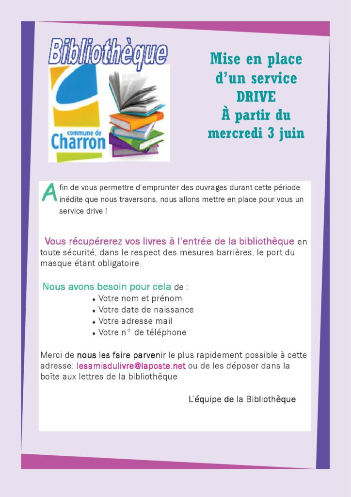 Afin de vous permettre d’emprunter des ouvrages, la Bibliothèque de Charron a rouvert ce Mercredi 3 Juin.