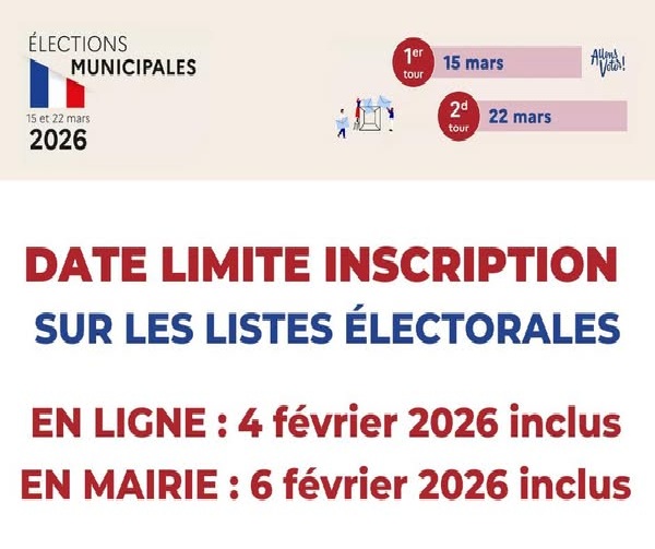 – jusqu’au vendredi 6 février 2026 inclus si vous vous inscrivez en mairie.