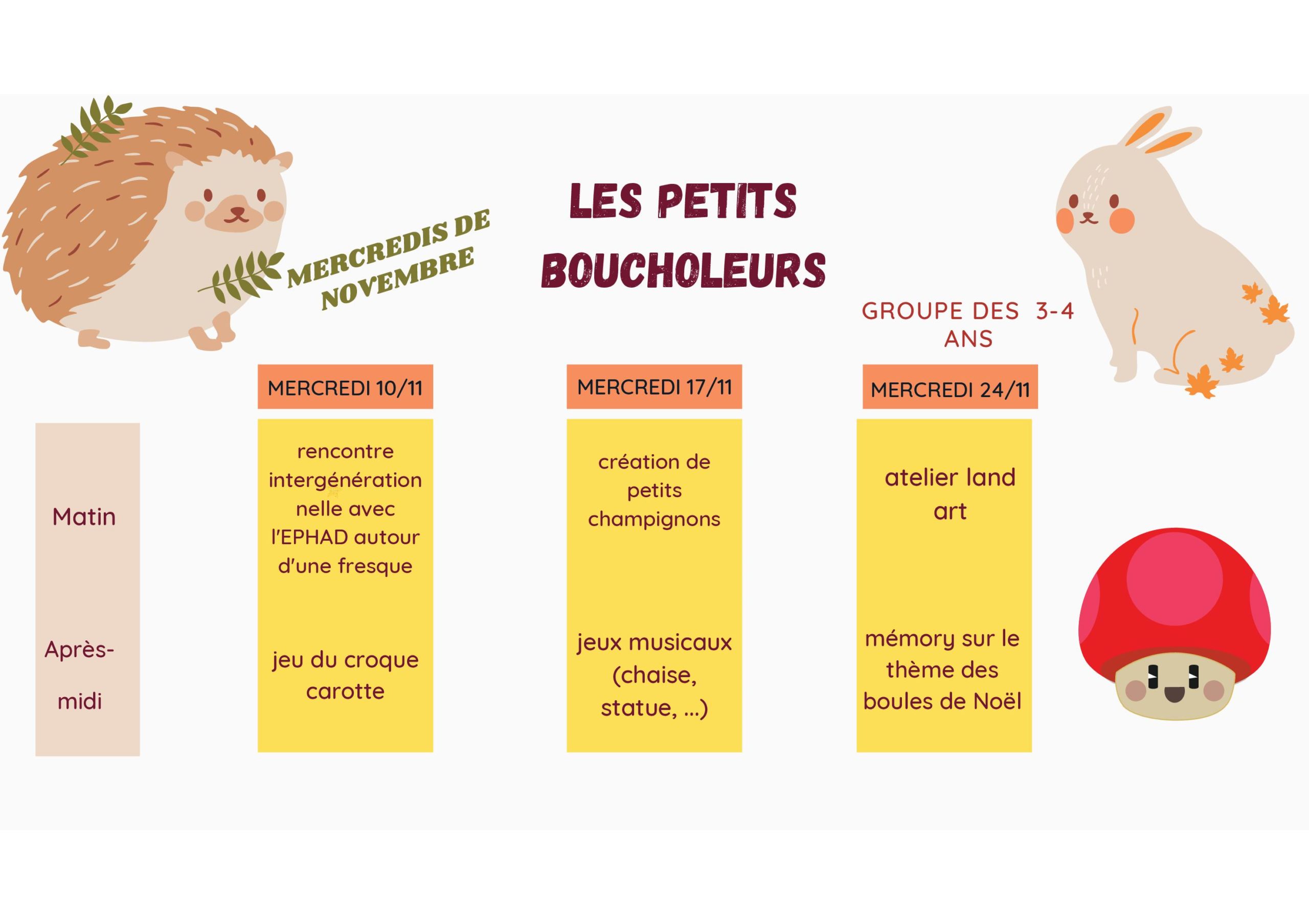 Voici le programme des Mercredis de Novembre pour l’accueil de loisirs les Petits Boucholeurs.