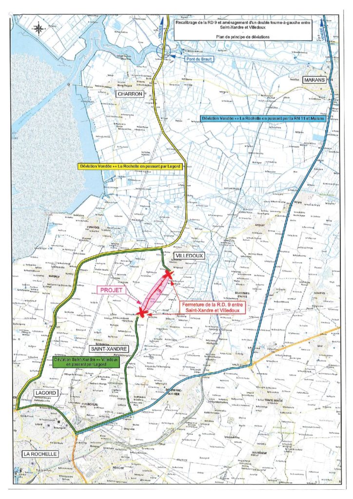 Une déviation sera mis en place par les RD104 et RD105 (vers Lagord) ou par la RN137 (route Marans/Usseau)