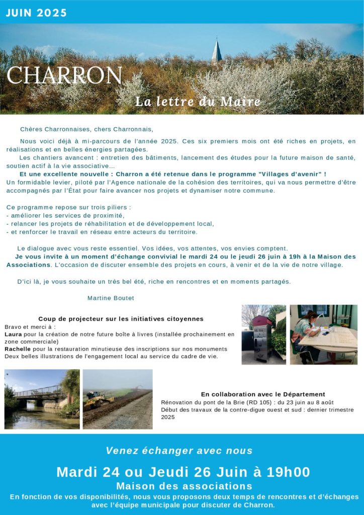 A l'occasion de ce début d'année, Martine Boutet, Maire de Charron, et l'ensemble du conseil...