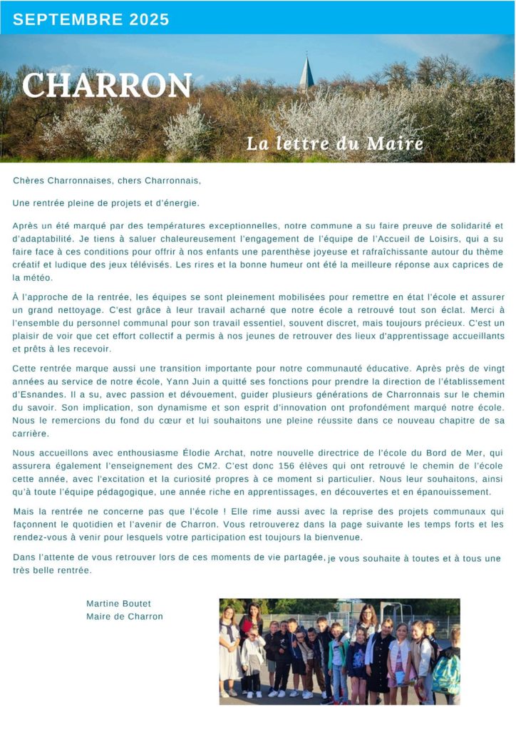 Lettre du Maire – Septembre 2025